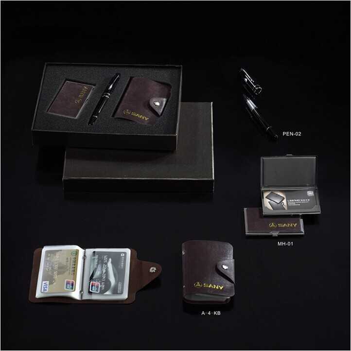 套装编号:MPK-TZ封皮材质:进口疯马皮礼盒规格: 250*185mm套装包含: 商务签字笔、24卡位商务卡包、不锈钢贴皮名片盒